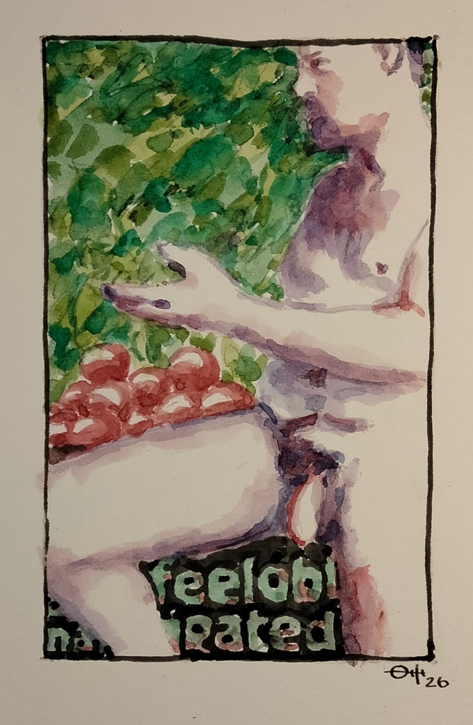 A nude male figure with words, or... while we are waiting with anticipation for our...