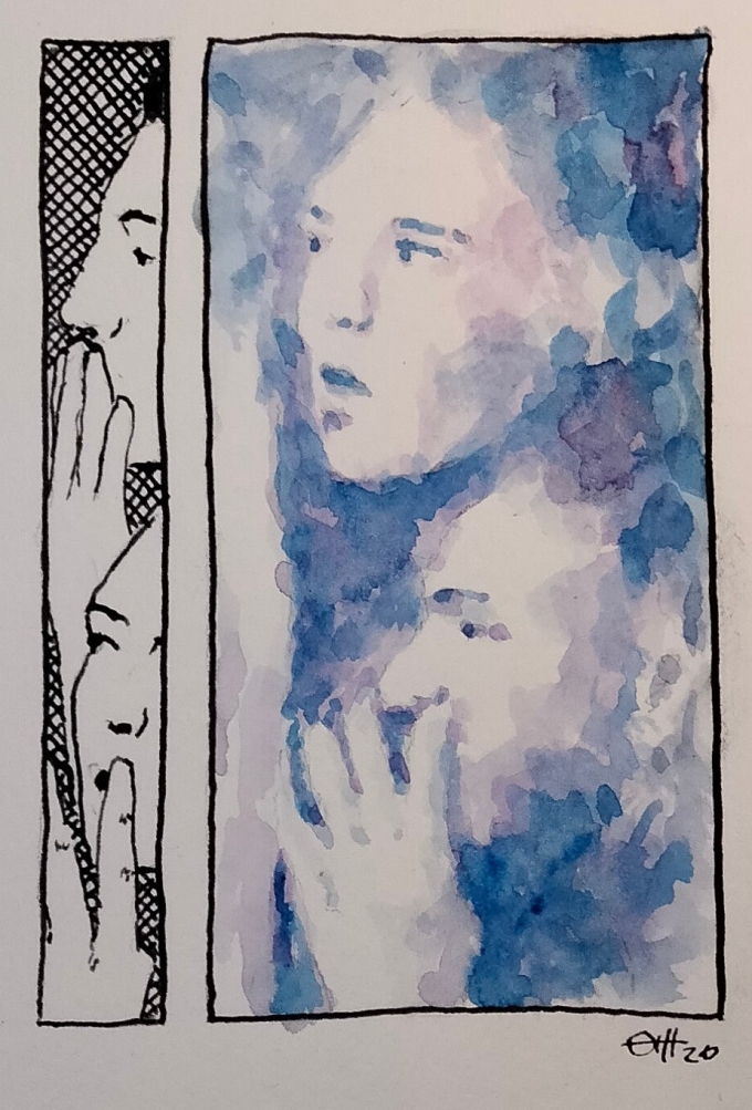 In the house Peter was quiet. He set up a film for Naomi. He did not watch with her. He cleaned. In silence He tapped on his Skroll. Tap. Tap. Tap. He did not talk to Naomi about what he wrote. He wrote a story. An angry man fighting to get out a box. A small box that was black on the inside and broken on the outside. He stopped writing before he finished the story. He sat at the breakfast bar. He stared out the window.
